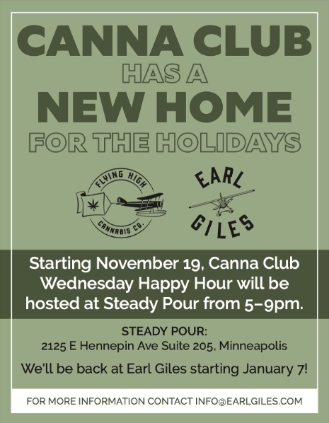 ![]() CannaConnect WorkshopNovember 19th -Seed-to-Sale Essentials for Minnesota Licenses @ The Wilderness Fitness and CoWorking Space, Minneapolis | ![]() Canna ClubNov 19th (and every Wednesday) - Canna Club Happy Hour. |